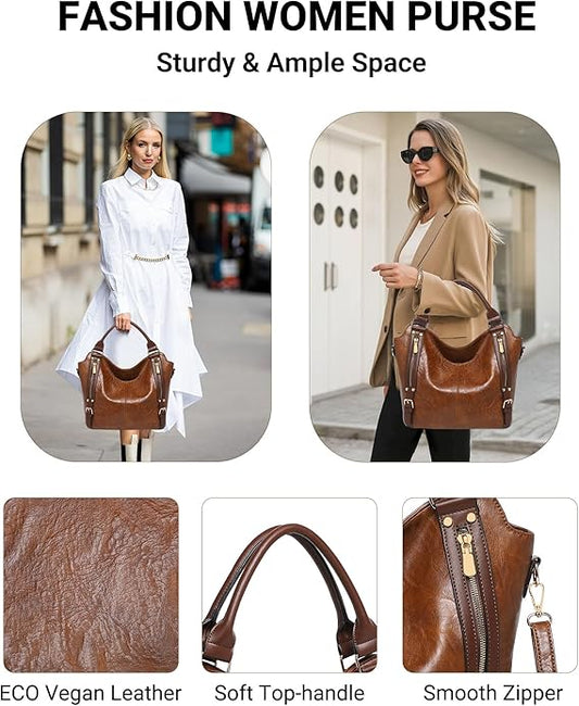 BAVERGE Purses for Women 3PCS, Large PU Leather Handbag Set Hobo Tote with Ladies Crossbody Shoulder Bag Wallet Guitar Strap