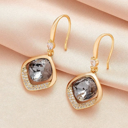Austrian Crystal Halo Cushion Cut Square Drop Dangle Earrings for Women 14K Gold Plated Hypoallergenic Jewelry Gifts