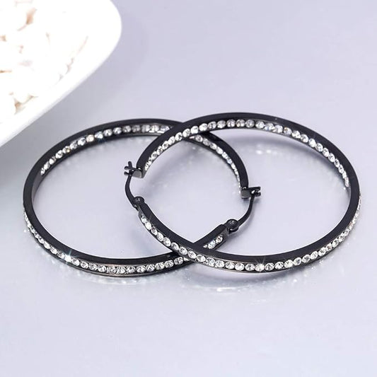 CiNily Mult-colors Crystal Stainless Steel Hoop Earring for Women Hypoallergenic Jewelry for Sensitive Ears Large Big Hoop Earrings 2"