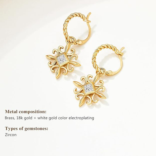 Cicy Bell 18k Gold Plated Dangle Earrings for Women Princess Cubic Zirconia Trendy Chunky Twist Drop Earrings