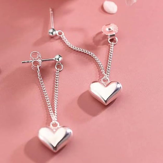 Heart Chain Dangle Earrings For Women 925 Sterling Silver Dangling Threader Earrings Women's Drop & Dangle Tassel Dangly Earrings Jewelry Gift