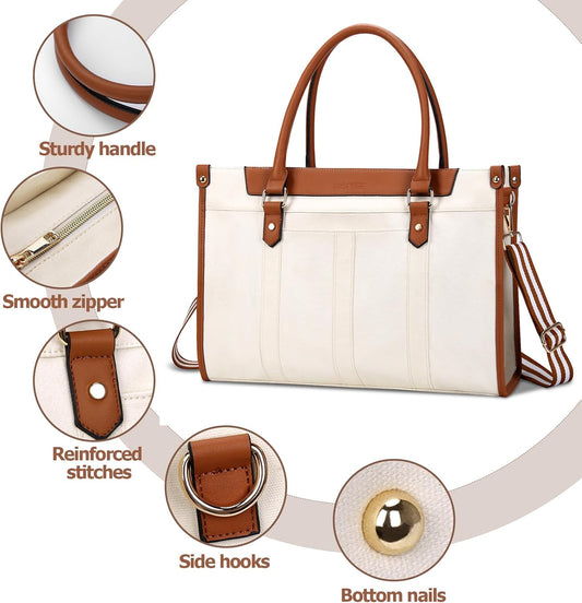 HOMIEE Tote Bag for Women, Canvas Laptop Bag Fits 15.6 Inch Work Tote, Shoulder Bag Casual Computer Bag for Conference, Formal, Office, College, Christmas New Year Gifts, Beige
