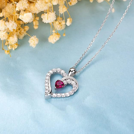 Heart Jewelry Necklaces for Women 925 Sterling Silver Birthstone Necklace Birthday Gifts for Women Wife Mom