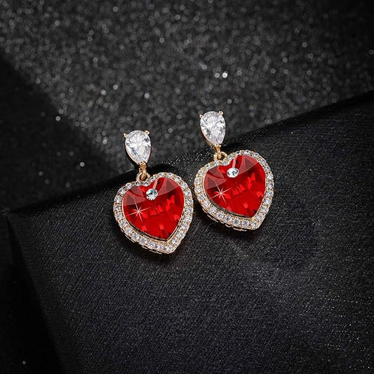 Heart Earrings for Women Austrian Crystal Halo Heart Earrings Drop Stud Earrings 14K Gold Plated Hypoallergenic Anniversary Valentines Day Jewelry Gift for Her