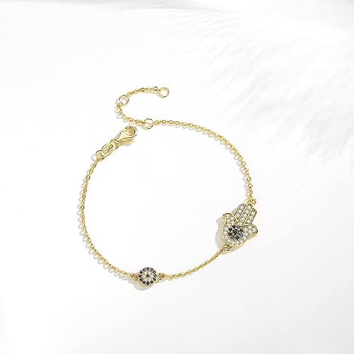 Hamsa Hand Evil Eye Bracelet 925 Sterling Silver Cubic Zirconia Link Chain 7" Adjustable for Women