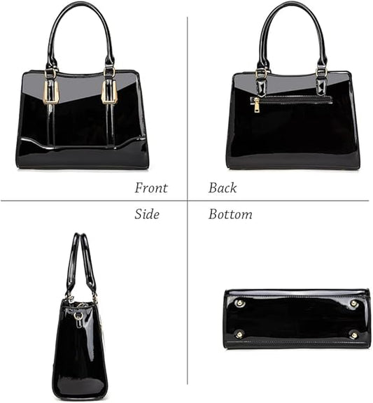 LJOSEIND Shiny Patent Leather Handbags Shoulder Bags Fashion Satchel Purses Top Handle Bags for Women