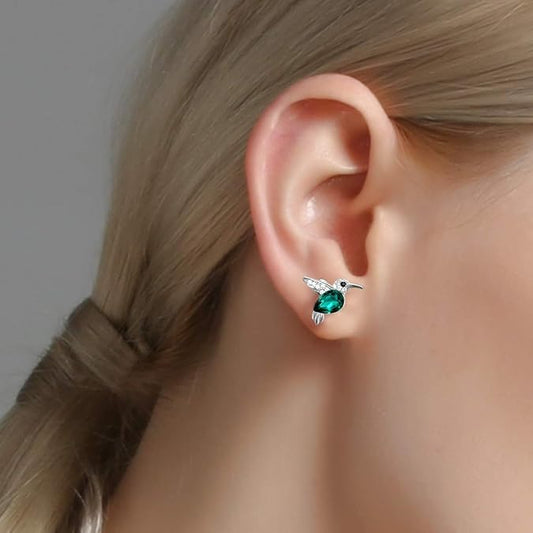 Jewever 925 Sterling Silver Hummingbird Ear Studs Blue Cubic Zirconia Earrings for Women Jewelry Gift Silvery