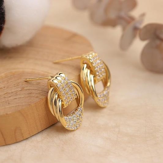 LANG XUAN 18K Gold Plated Hoop Earrings for women Trendy Twisted Huggie Hoops Earrings