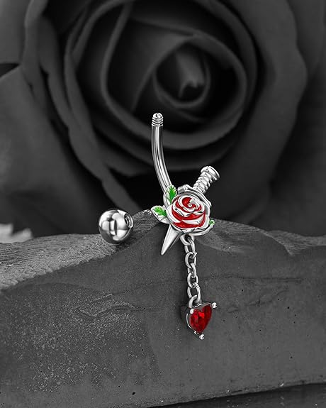 Jewseen 14g Halloween Belly Button Rings Surgical Stainless Steel Belly Rings Heart Floral Dangle Belly Button Piercing Navel Rings for Women Men
