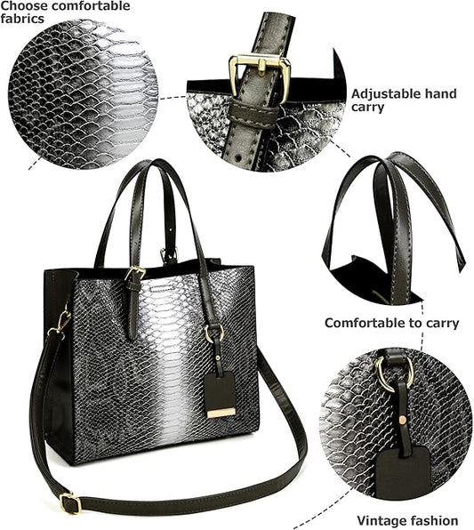 KingTo Women's Crocodile Pattern Satchel Handbags Stylish Tote Handbags crocodile purses for women 3 Pcs Set
