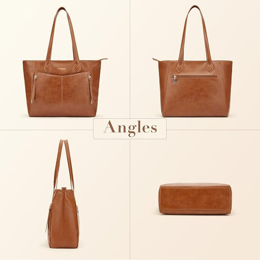 Missnine Elegant Leather Tote for Women Everyday Travel Purse Ladies Top-handle Shoulder Work Bags Shopper Handbag
