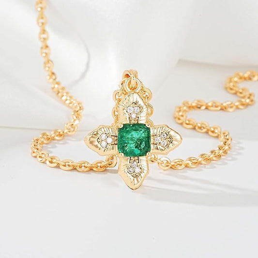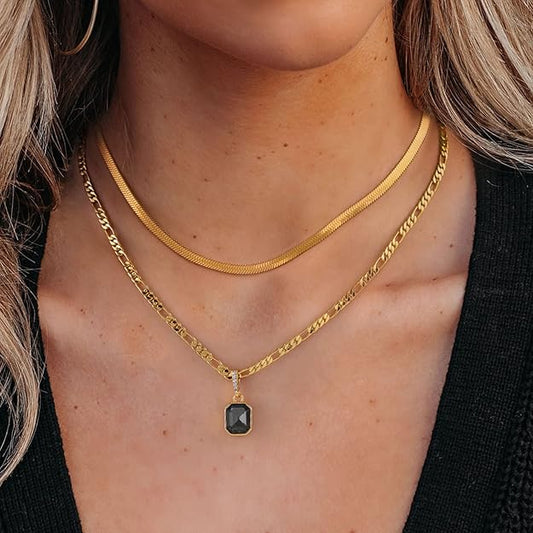 LOYATA Layered Gold Necklace for Women,14K Gold Plated Cubic Zirconia Diamond Necklaces for Women Emerald Green Pendant Necklace Choker Dainty Charm Gold Pendant Necklace for Women Jewelry