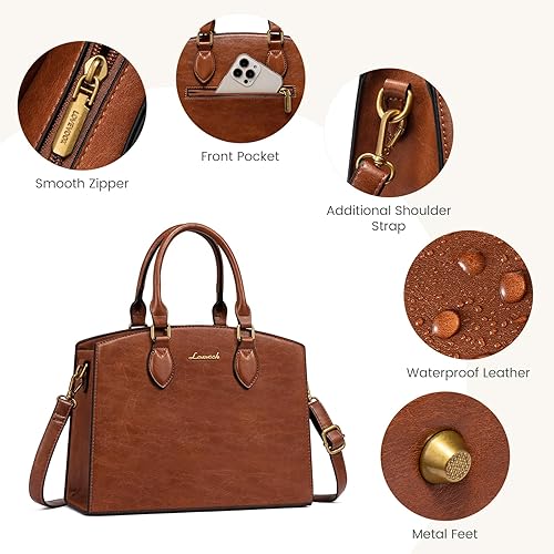 LOVEVOOK Laptop Tote for Women - 15.6 Inch Professional Leather Computer Briefcase - Waterproof Shoulder Bag - Large Capacity Business & Office Bag