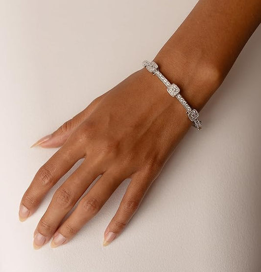 Mariell Vintage Cubic Zirconia Crystal Wedding Bangle Bracelet, 7" Size for Brides, Birthday Gift