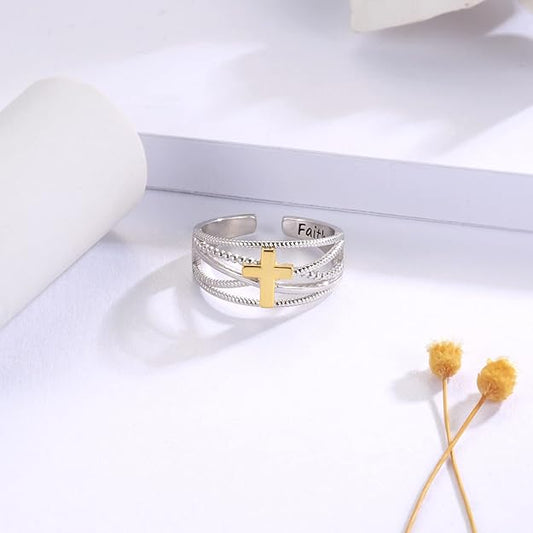 APOTIE Sterling Silver Cross Wrap Ring - S925 Faith Adjustable Ring Jewelry Inspirational Gift for Women