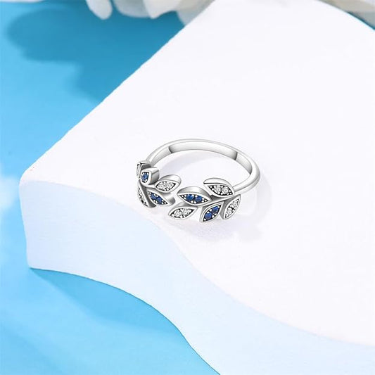 PRAYMOS 925 Sterling Silver Leaf Birthstone Rings Adjustable Open Ring for Women with Jewelry Box Size 7-9
