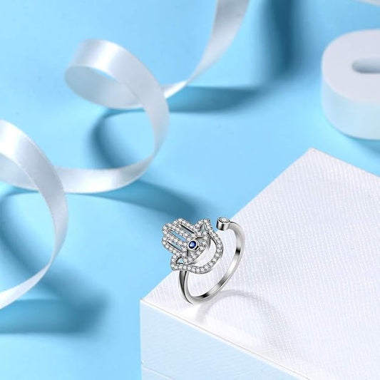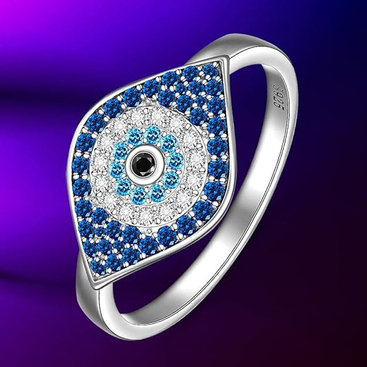 Evil Eye Ring Sterling Silver Sapphire Spiritual Turkish Blue Evil Eye Rings for Women Amulet Protection Ring Gift for Her Size 7