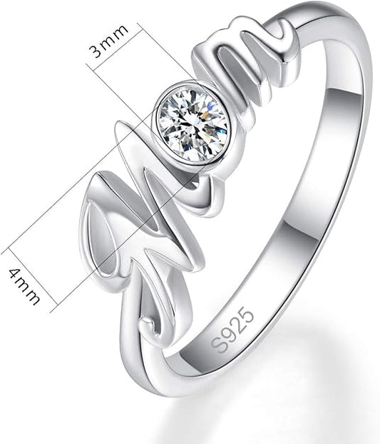 YFN 925 Sterling Silver Mom Rings Mothers Ring Women Jewelry for Mum