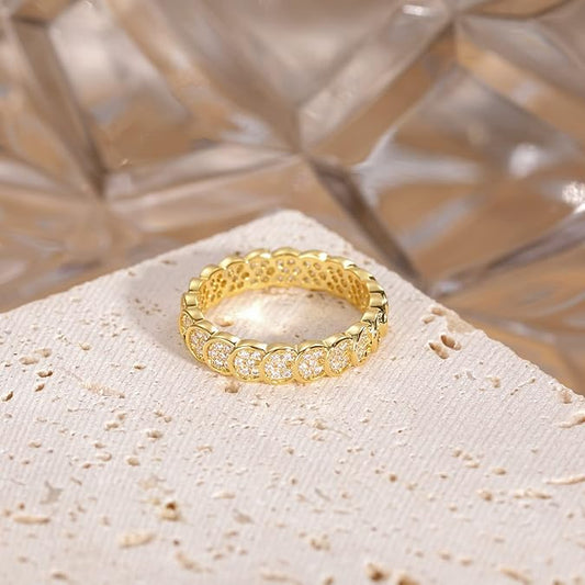 SHINYSO 14K Gold Plated Wedding Bands for Women Cubic Zirconia Round Eternity Engagement Promise Rings for Her