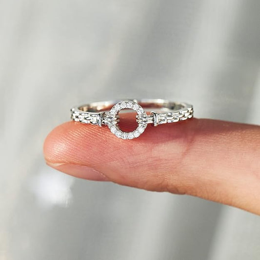 Hapour 925 Sterling Silver Ring, Cubic Zirconia Created Comfort Fit Light Weight Statement Ring for Women Ring Size 6-8