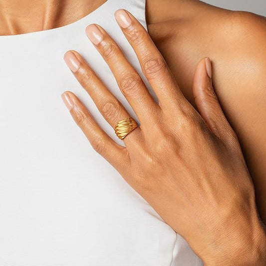 Dome Chunky Gold Ring: Statement Gold Thumb Band Rings for Women Dainty 14K Gold Plated Wide Thick Croissant Ring Non Tarnish Minimalist Gold Jewelry for Women Trendy Size 6