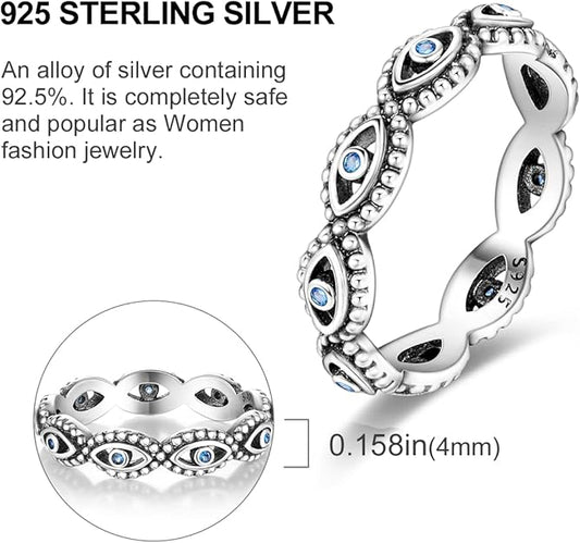 NARMO 925 Sterling Silver Women Rings Moon Star Ring Evil Eye Ring Colorful Cubic Zirconia Ring Stackable Vintage Rings Statement Rings for Women Size 8