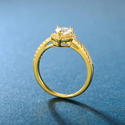 MDFUN Luxurious 18k Gold Plated Cubic Zirconia Wedding Engagement Rings Eternity Bridal Band Halo Rings Size 8