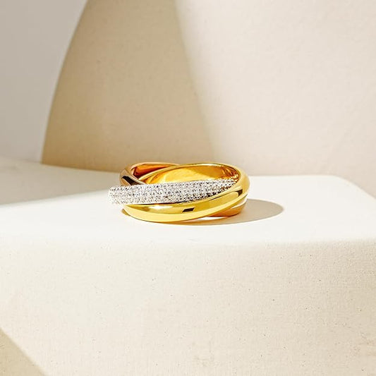 Gold and Silver Statement Rings for Women Wire Intertwined Design 14K Gold Plated Silver Band Ring Index Finger Rings Costume Jewelry Size 7