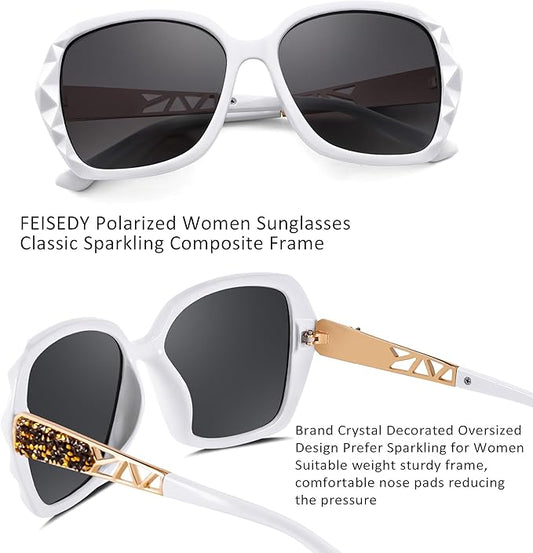 FEISEDY Polarized Women Square Sunglasses Sparkling Composite Shiny Frame B2289