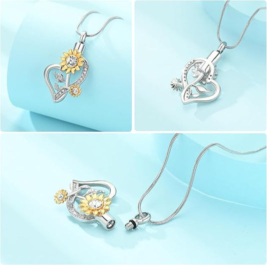 Heart Urn Necklace for Ashes Sunflower Cremation Jewelry for Women Stainless Steel Memorial Necklaces Ash Holder for Human Pets Keepsake Jewelry for Loved Ones with Fill Tool