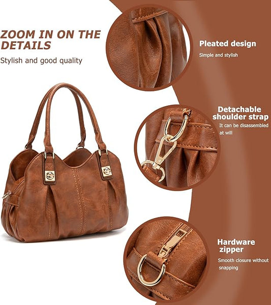 KingTo 4pcs Purses Retro Tote Handbags for Women Stylish Shoulder Bags Soft Top Handle Satchel Set