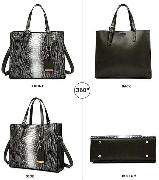 KingTo Women's Crocodile Pattern Satchel Handbags Stylish Tote Handbags crocodile purses for women 3 Pcs Set