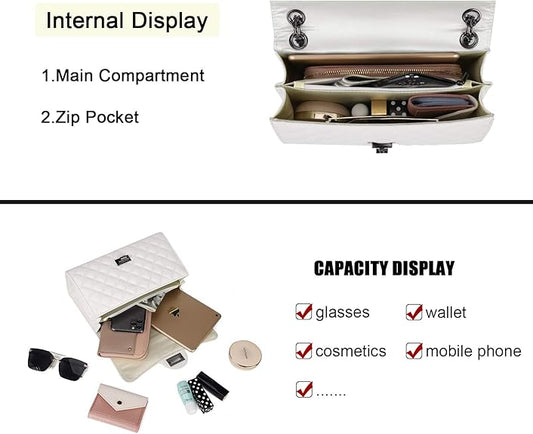 Gladdon Quilted Leather Crossbody Purse for Women Trendy Ladies Shoulder Bag with Chain Designer Purses