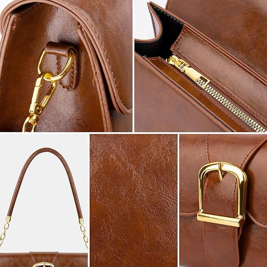 Shoulder Bag for Women, Cute PU Leather Small Purse Handbags, Retro Classic Tote Purses for Women with Removable Strap