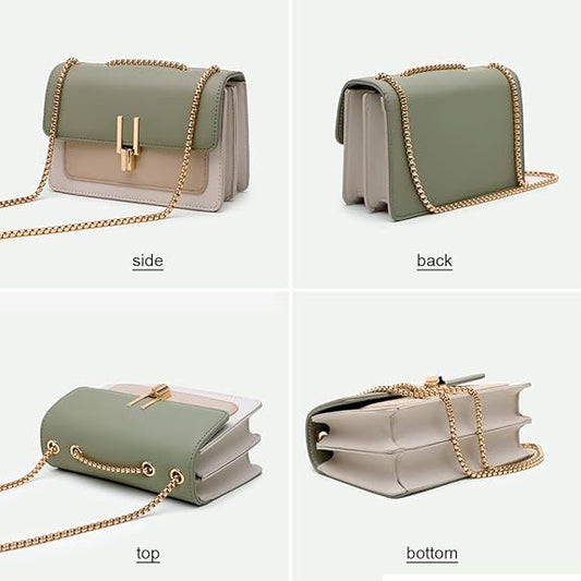 AMHDV Small Shoulder Chain Bag Color Block Crossbody Purse Square Flap Leather Handbag for Women