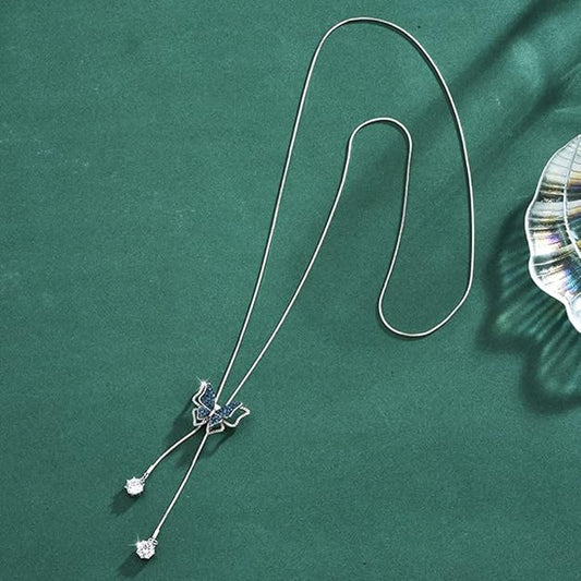 Sither Butterfly Pendant Necklace for Women Long Sweater Chain Crystal Tassel Necklace Wedding Dressy Necklace Jewelry for Winter Evening Party Christmas Gift
