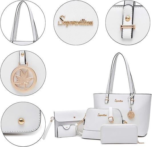 Soperwillton Handbag for Women Wallet Tote Bag Shoulder Bags Top Handle Satchel 5pcs Purse Set
