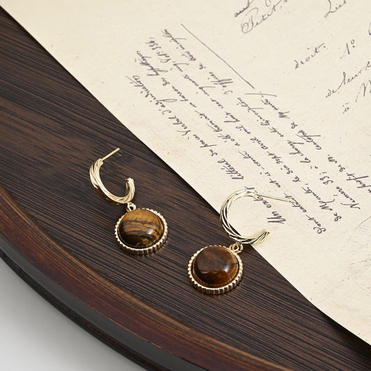 Tiger Eye Gemstone Earrings 14k Gold Plated Dangle Drop Earrings Gold Hoop Stud Earrings for Women Fashion Jewelry