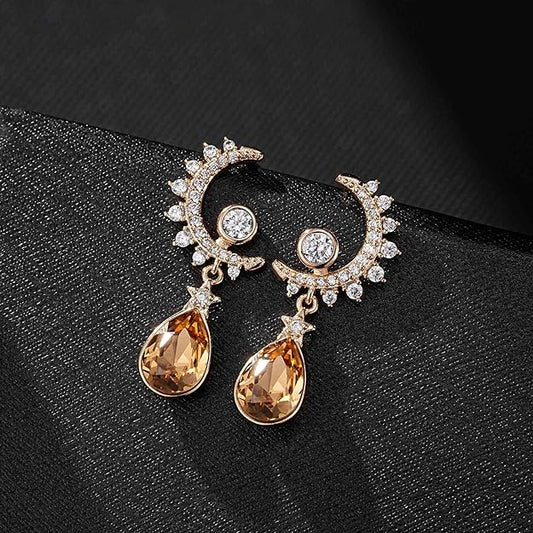 EVEVIC Austrian Crystal Teardrop Moon Star Celestial Dangle Earrings for Women 14K Rose Gold Plated Hypoallergenic Drop Earring Jewelry Gifts