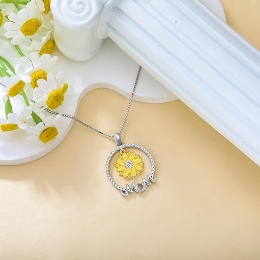 LONAGO Sunflower Mom Necklace for Women Silver Mom Pendant Necklace for Mother Grandmother Mother Day Gift