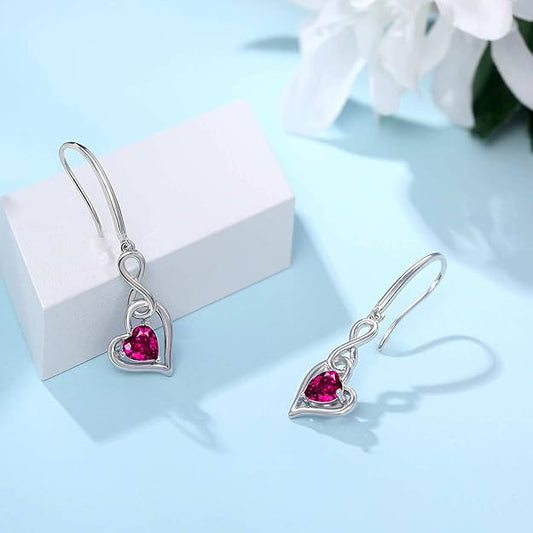 Shysnow Birthstone Infinity Dangle Earrings for Women 925 Sterling Silver Heart Cubic Zirconia Drop Gemstone Dangling Earrings Birthstones Jewelry