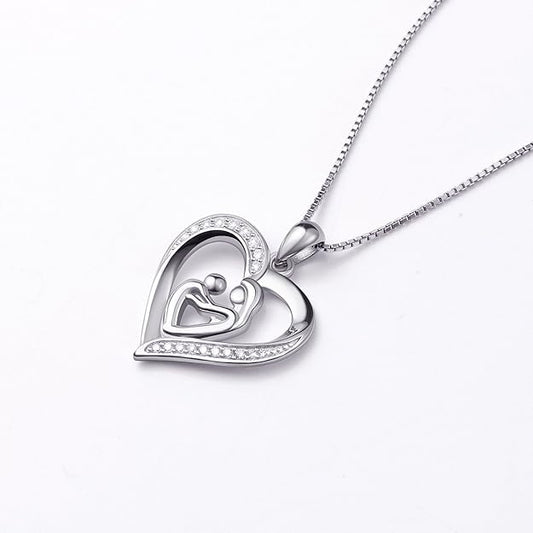 DAOCHONG Mother's Day Gift Mother Holding Child Sterling Silver Mothers Love Heart CZ Pendant Necklace for Women Mother Grandmother