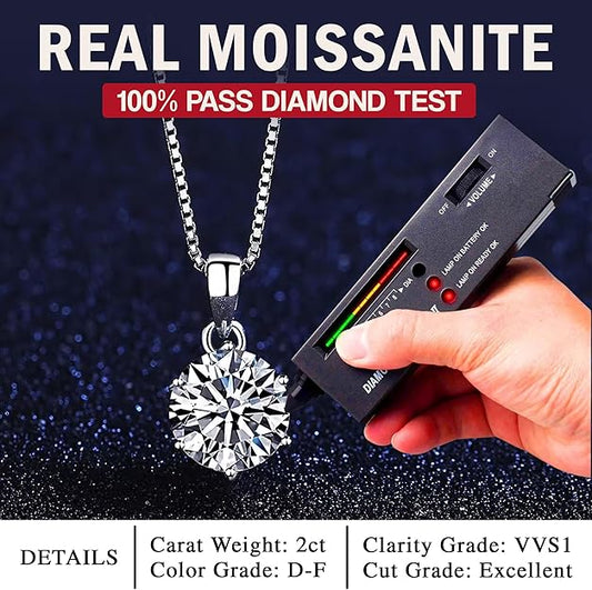 Moissanite Diamond Necklace for Women | GRA Certified 925 Sterling Silver | 2 Carat Solitaire Necklace | to My Wife Gift for Anniversary, Birthday, Wedding