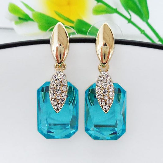 Navachi 18k Gold Plated Spindle Shape Metal White Crystal Square Zircon Dangle Stud Earrings