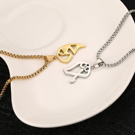 STWTR Men's and Women's Couple Necklace Pendant Love CZ Puzzle Matching Stainless Steel Pendant