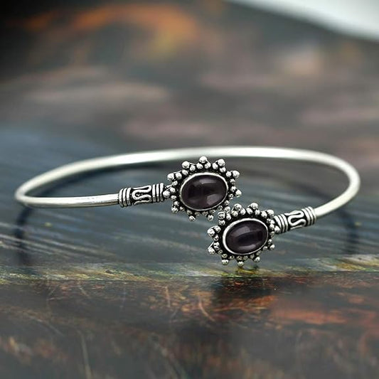 3.80Cts Natural Oval Shape Gemstone Bangle For Women Silver Overlay Handmade Cuff Bangle Jewelry Women's Day Gift For Mom Wife Sister Her