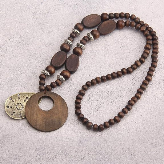 Bjesinmo Long Necklaces for Women Boho Wooded Pendant Vintage Necklace Sweater Chain Necklace Handmade Jewelry