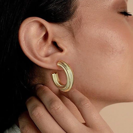 Chunky Gold Hoop Earrings for Women, 14k Gold Chunky Earrings for Women Big Large Gold Hoop Earrings Tarnish Free Gold Earrings Hypoallergenic Lightweight Thick Hoop Earrings Trendy Gold Hoop Earrings