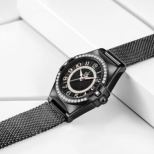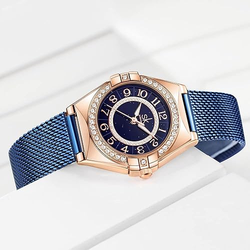 SK Ladies Easy Read Watch with Arabic Numerals Crystal Diamond Women Dress Watches Water Resistant