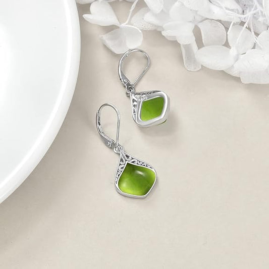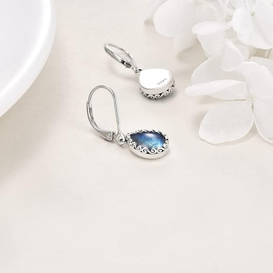 Moonstone/Larimar/Turquoise/Labradorite/Jade/Malachite Teardrop Earrings Sterling Silver Cage Filigree Dangle Drop Earrings for Women